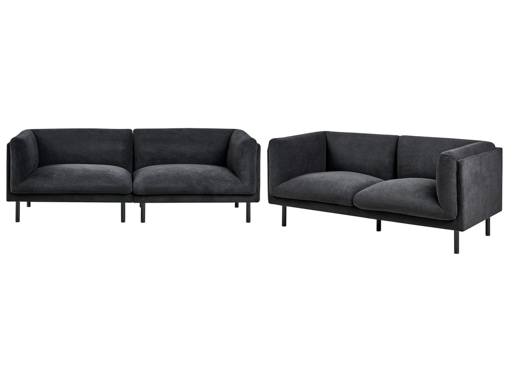 3+2 Seater Sofa Set Black Polyester Fabric Metal Black Legs Upholstered Living Room Furniture Beliani