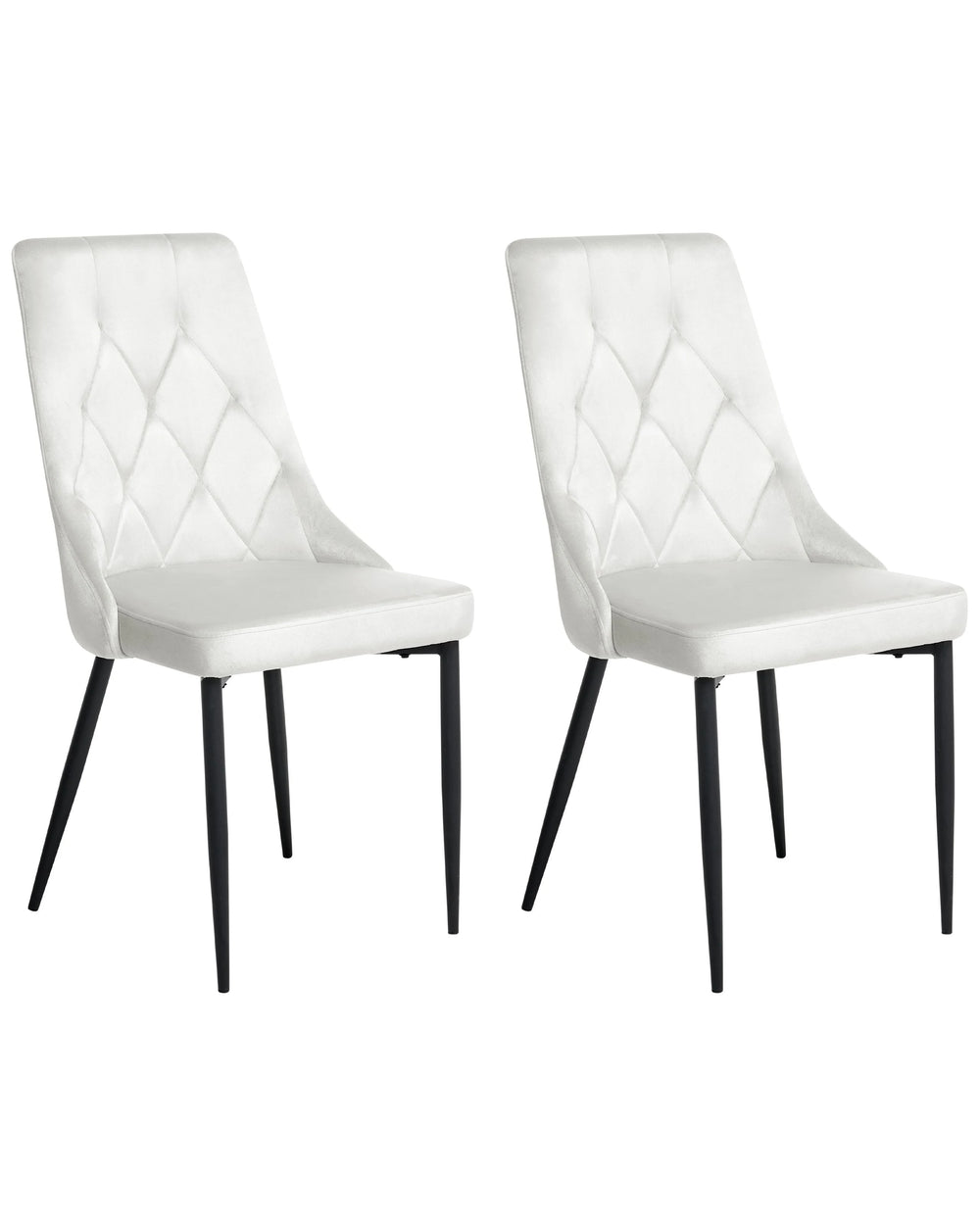 Set of 2 Dining Chairs Off-White Velvet Black Iron Legs Modern Upholstered Chairs Beliani