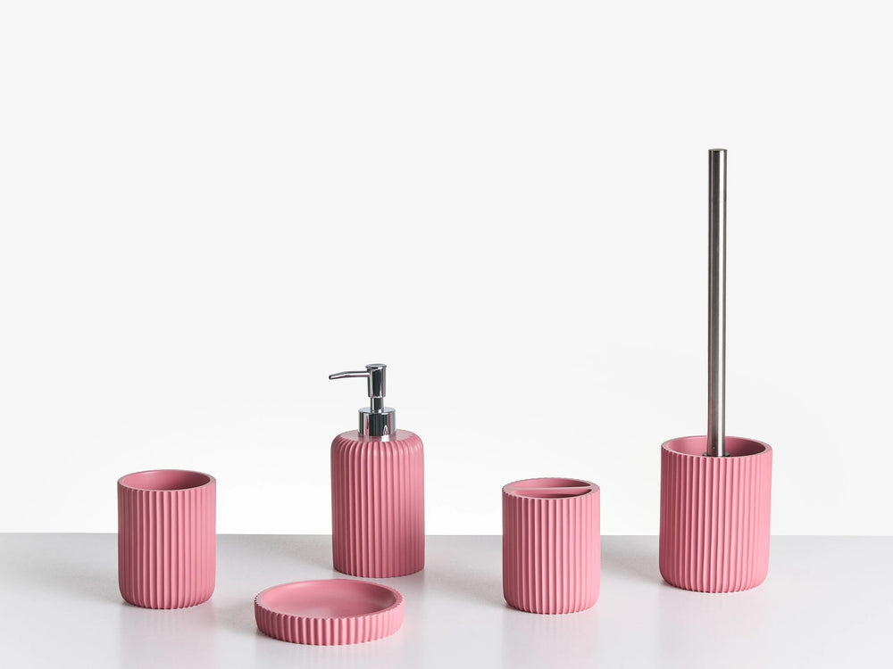 5-Piece Bathroom Accessories Set Pink Polyresin Soap Dish Soap Dispenser Toilet Brush Tumbler Toohtbrush Holder Beliani