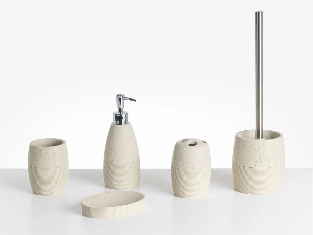 This set of essential accessories has everything you need to keep your bathroom looking neat and well put-together. Comprising a tumbler, toothbrush holder, soap dish, toilet brush, and dispenser, it's a practical addition you'll find useful every day. Each piece is made from durable polyresin, designed to stand up to regular use while still looking stylish.