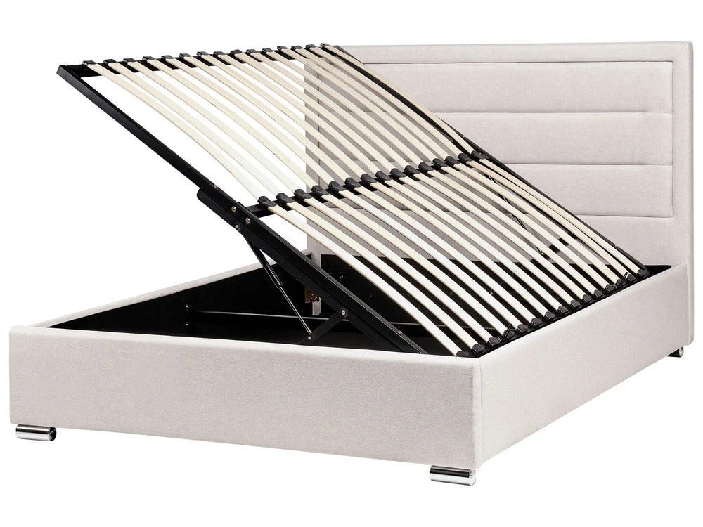 Storage Bed Light Beige Polyester Fabric Upholstery EU Double Size 4ft6 Modern Design Padded Headboard Ottoman Lift Beliani