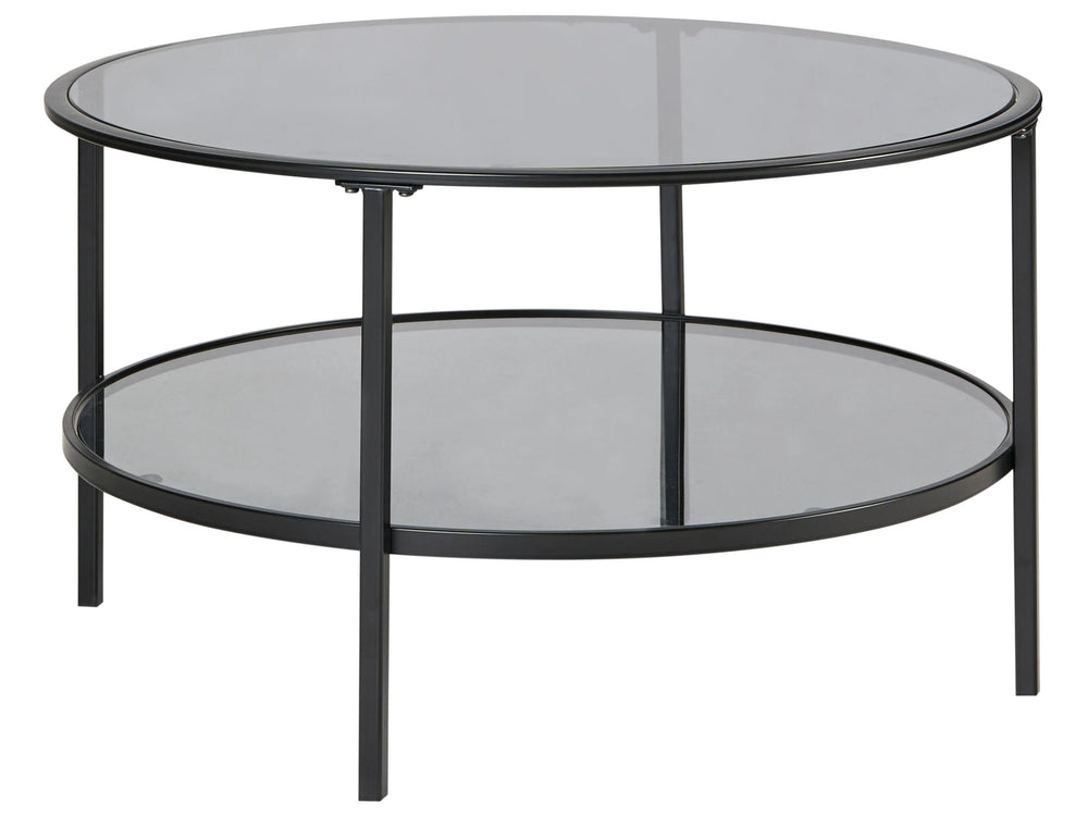 Coffee Table Black Tempered Glass Iron 80 cm with Mirrored Shelf Round Glam Modern Living Room Furniture Beliani is backordered and will ship as soon as it is back in stock.