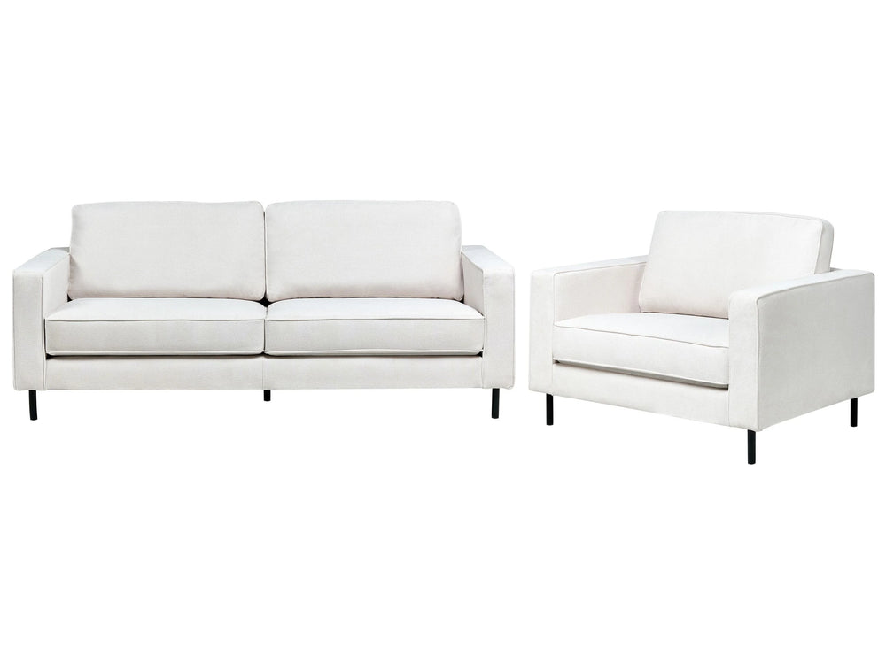 Sofa Set Off-White Polyester Fabric 3 Seater Sofa Armchair Minimalist Living Room Design Beliani is backordered and will ship as soon as it is back in stock.
