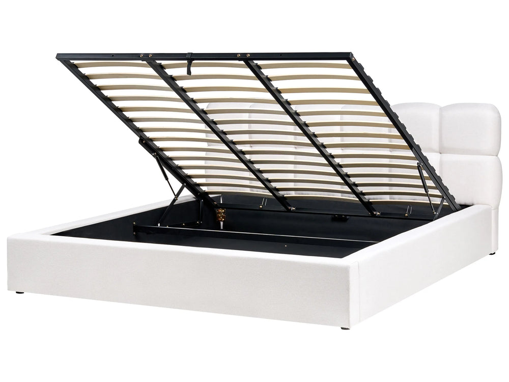 EU Super King Size Bed Off-White Fabric 6ft Upholstered Frame Biscuit Headrest with Storage Beliani