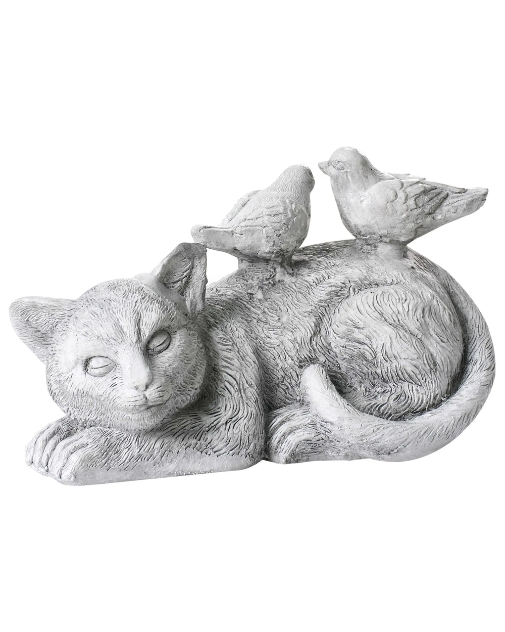 Decorative Figurine Grey MgO 22 cm Accent Piece Cat and Birds Indoor Outdoor Decoration Living Room Beliani
