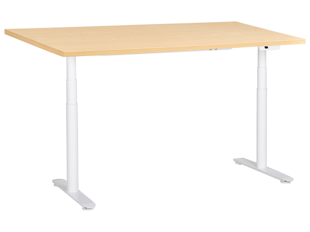Electrically Adjustable Desk Light Brown Tabletop White Steel Frame 160 x 72 cm Sit and Stand Round Feet Modern Design Beliani