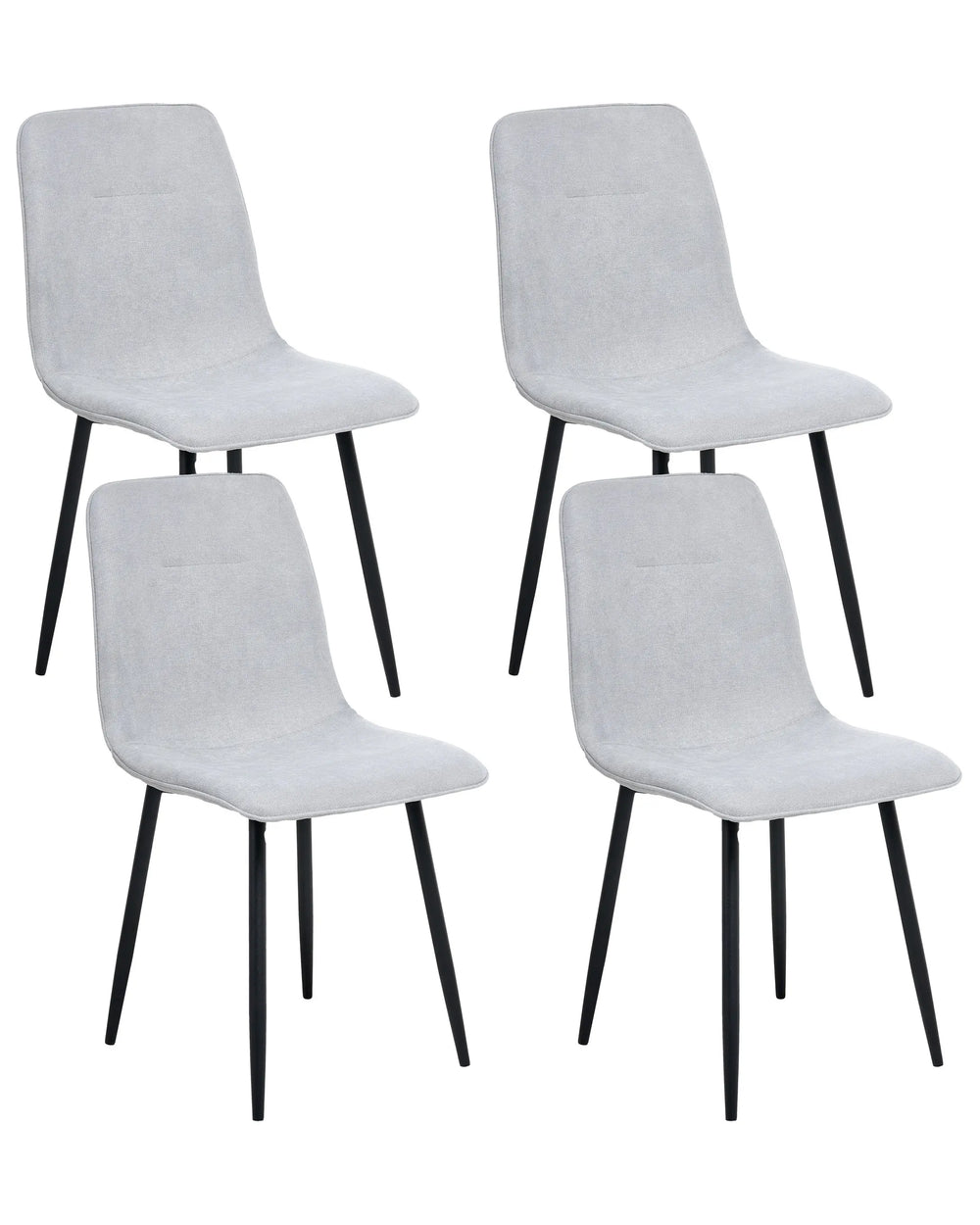 Set of 4 Dining Chairs Light Grey Polyester Upholstery Iron Black Legs Armless Dining Room Beliani