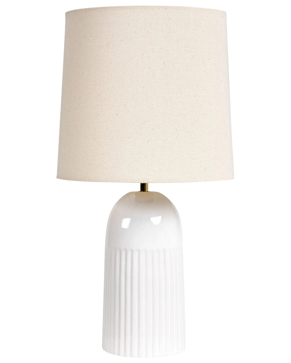 Table Lamp Off White Ceramic Base Linen Shade Bedside Lamp for Hallway Lounge Beliani