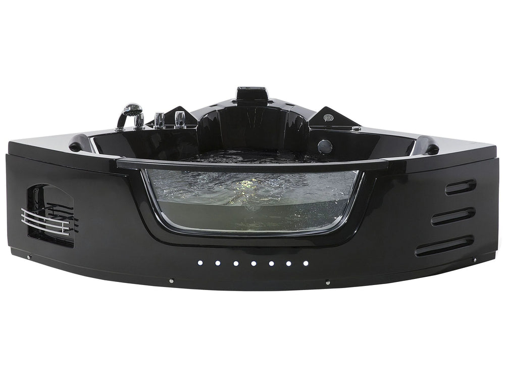 Massage Points Corner Bath Black Sanitary Acrylic and Glass 215 x 155 cm Beliani
