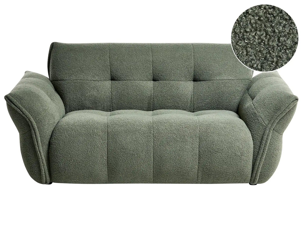 2 Seater Sofa Dark Green Boucle Upholstered Back and Front Wooden Black Legs with Caps Living Room Cosy and Soft Furniture Beliani is backordered and will ship as soon as it is back in stock.