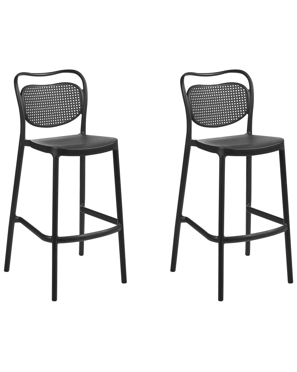 Set of 2 Bar Chairs Black Plastic Retro Weather Resistant Indoor and Outdoor Use Beliani