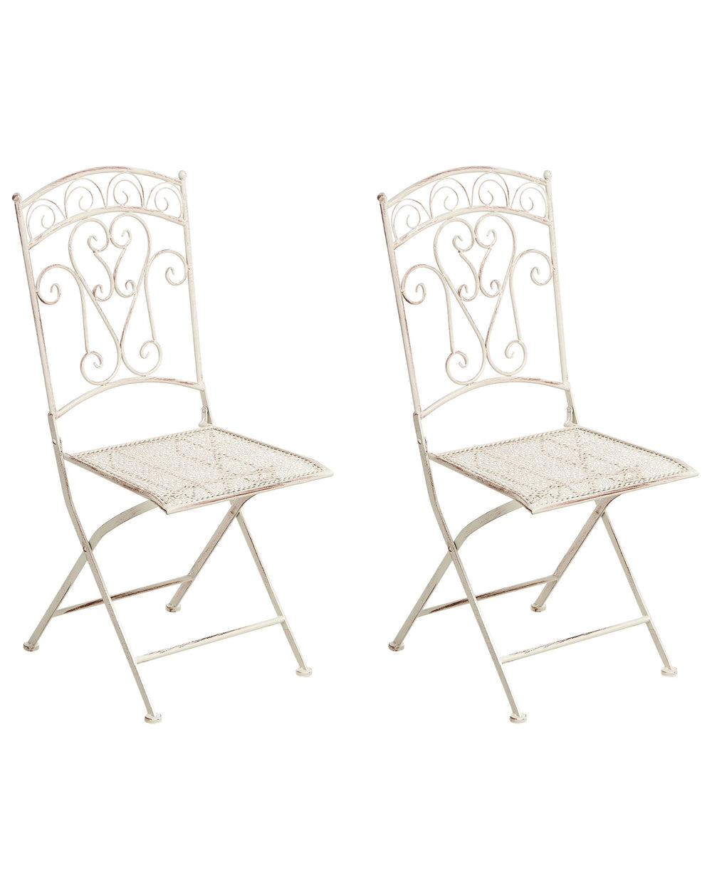 Set of 2 Garden Chairs Light Beige Metal Iron Frame Folding Vintage Style Outdoor Beliani
