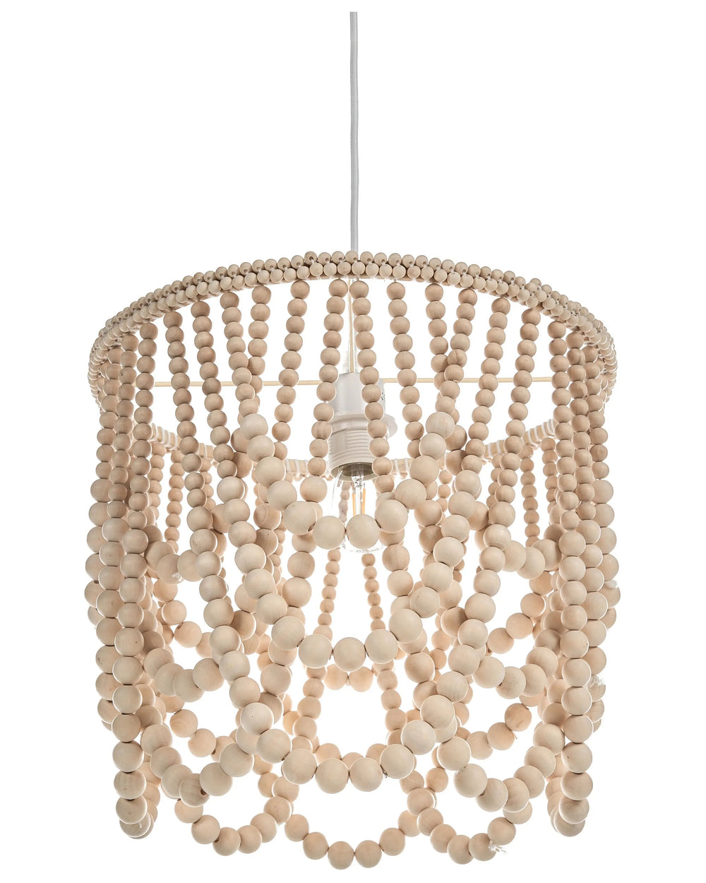 Chandelier Light Brown Rubberwood Beads Boho Style Beliani