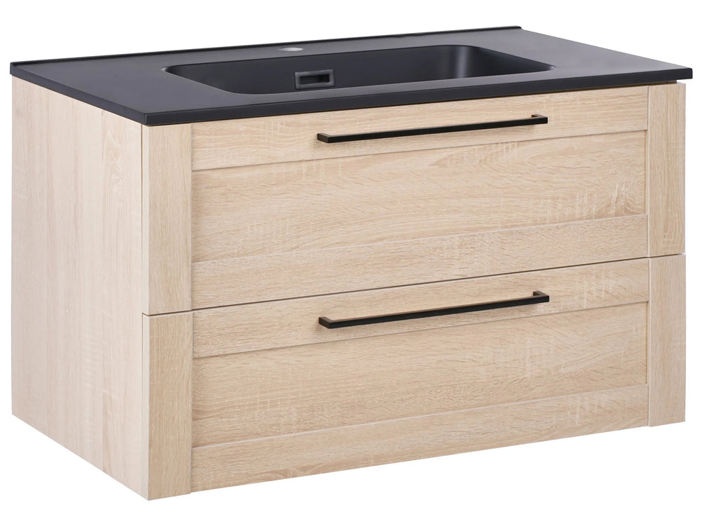 Vanity Unit with Basin Light Brown Engineered Wood Bathroom Cabinet Storage 80 x 47 cm Modern Design Beliani is backordered and will ship as soon as it is back in stock.