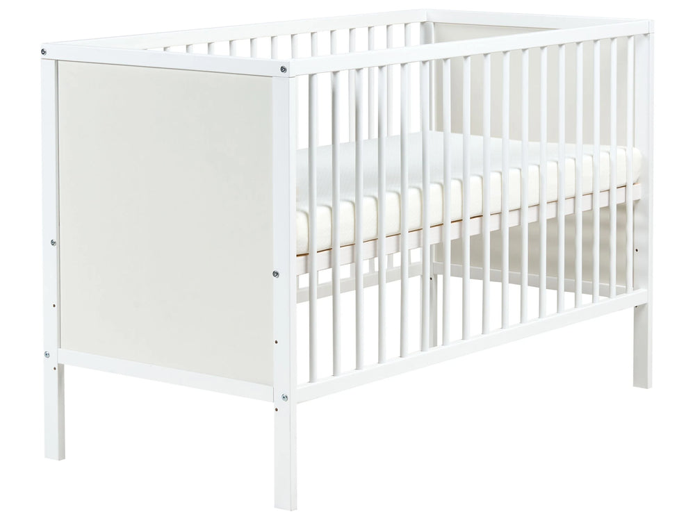 Baby Cot Bed White MDF 60 x 120 cm with Bars Height Adjustable Standard Size Nursery Accessories Minimalistic Design Beliani is backordered and will ship as soon as it is back in stock.