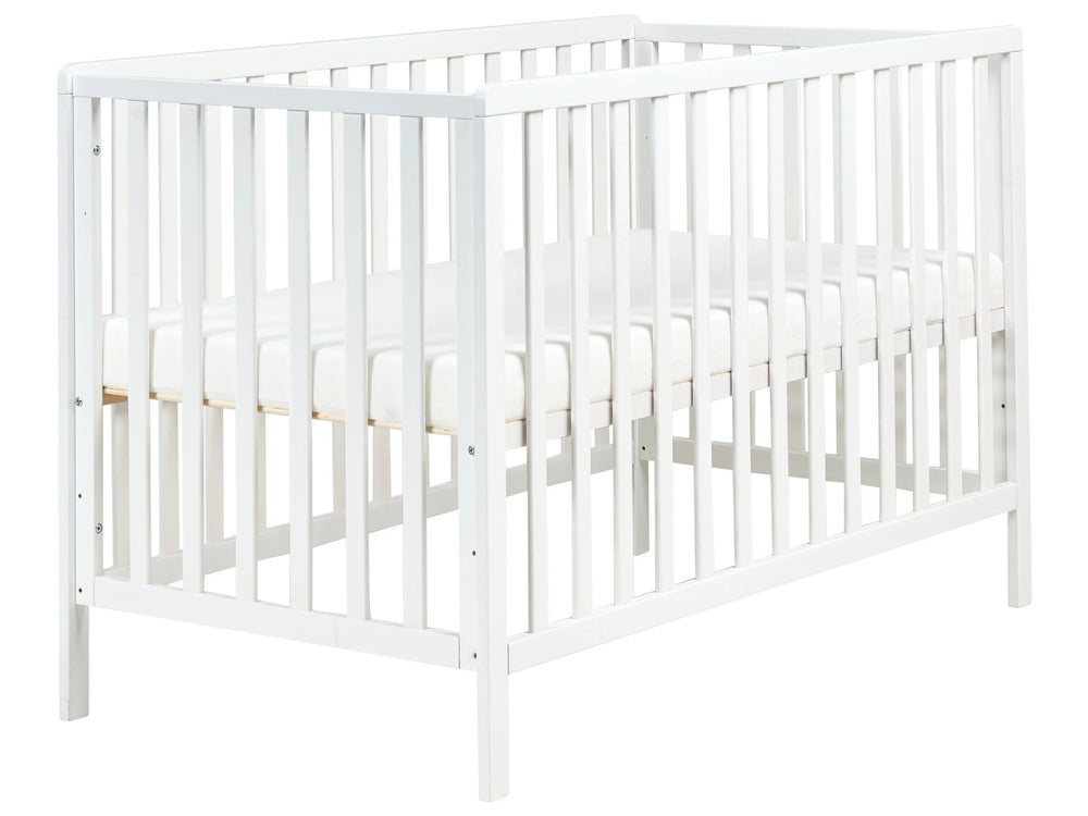 Baby Cot Bed White Pine Wood 60 x 120 cm with Bars Height Adjustable Standard Size Nursery Accessories Minimalistic Design Beliani is backordered and will ship as soon as it is back in stock.