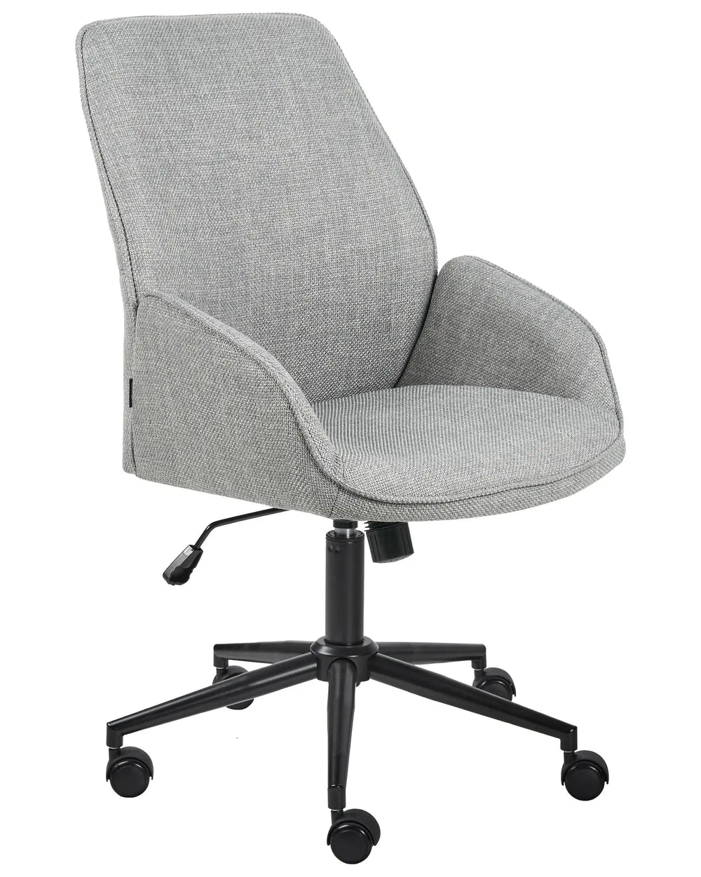 Office Chair Grey Fabric Upholstery Swivel Side Occassional Chair Seat Height Adjustment Beliani