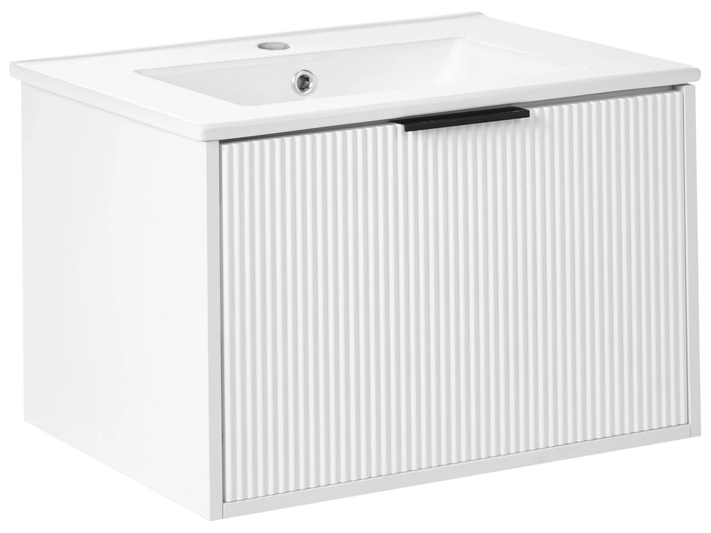 Wall Mounted Vanity Unit White Engineered Wood Bathroom Cabinet Ceramic Basin 60 cm Black Handle Modern Design Beliani