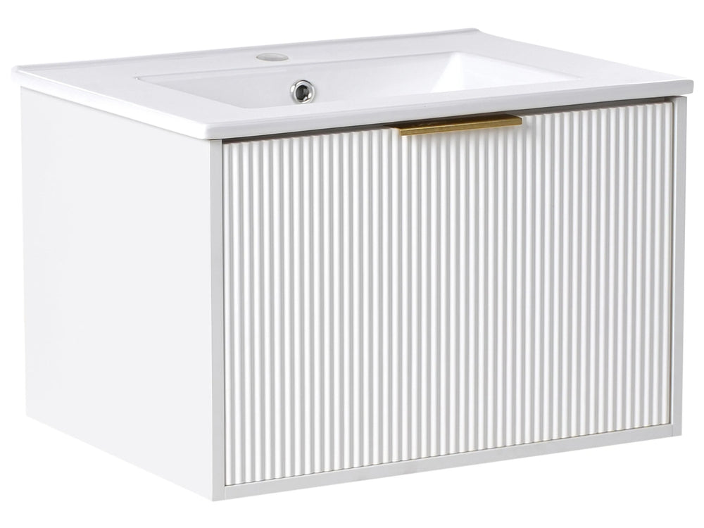 Wall Mounted Vanity Unit White Engineered Wood Bathroom Cabinet Ceramic Basin 60 cm Gold Handle Modern Design Beliani