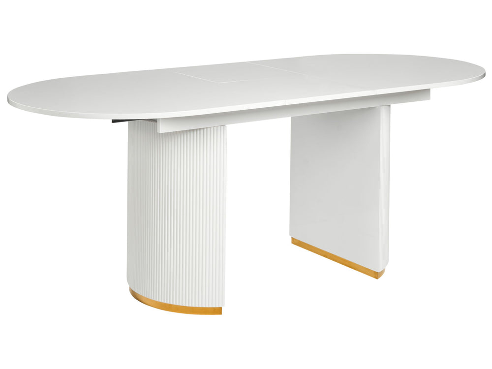 Extending Dining Table White MDF Gloss Tabletop Buttefly Leaf Mechanism Glamour Style Beliani
