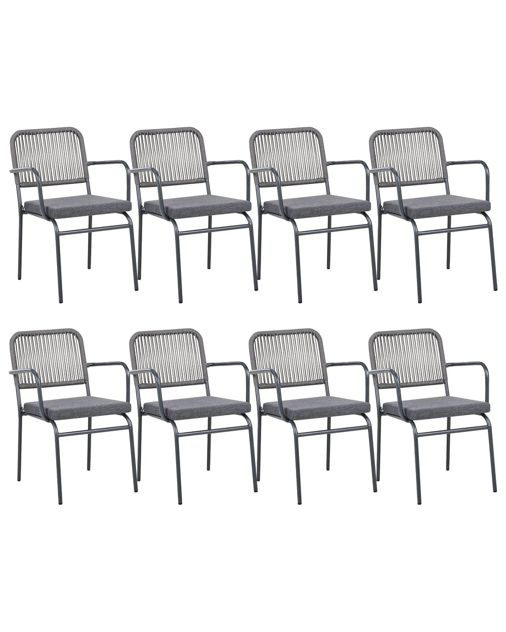 Set of 8 Garden Chairs Grey Aluminium Powder Coated Finish Frame Stackable Outdoor Beliani