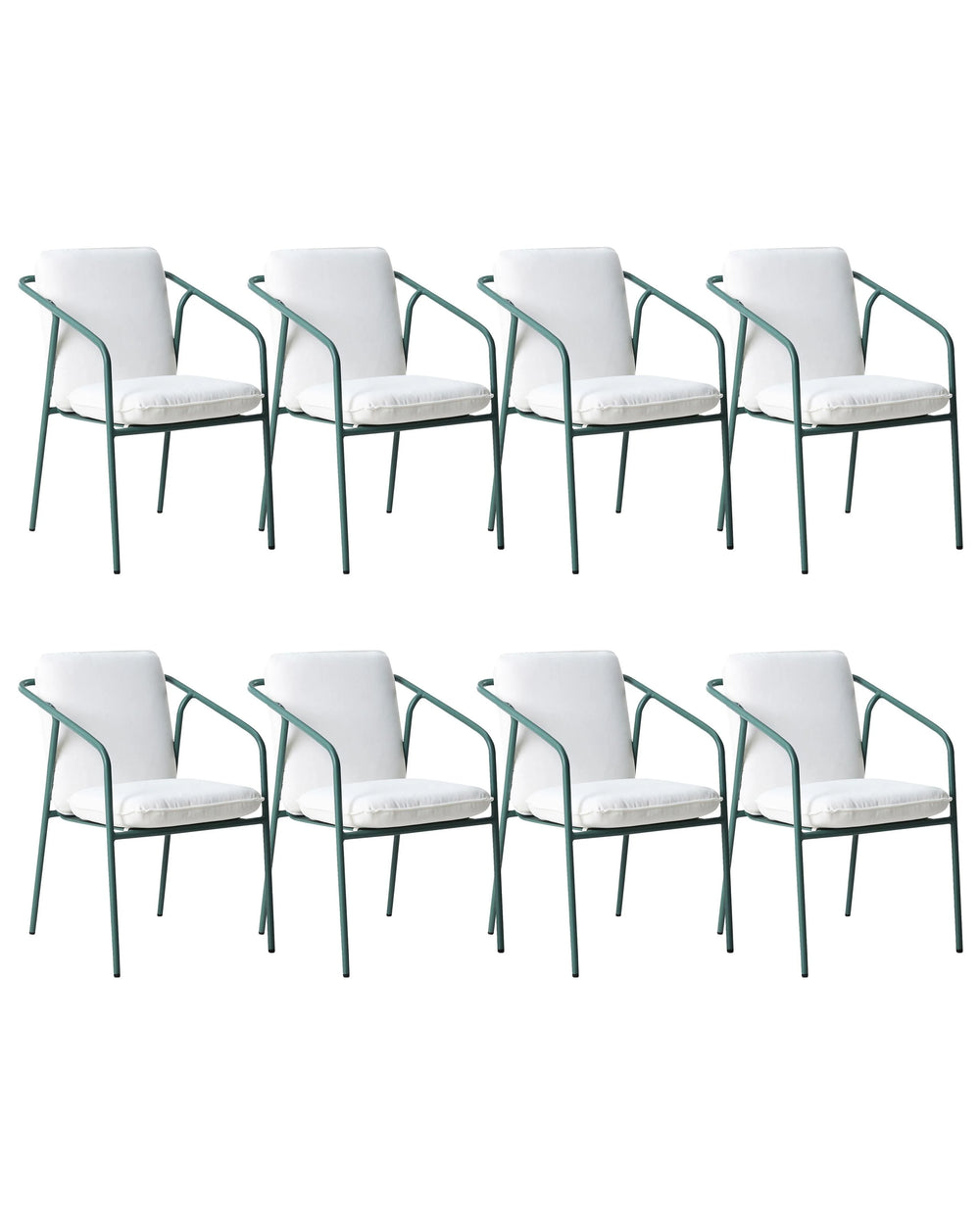 Set of 8 Garden Chairs Green Aluminium Metal Powder Coated with White Cushions Stackable Outdoor Beliani