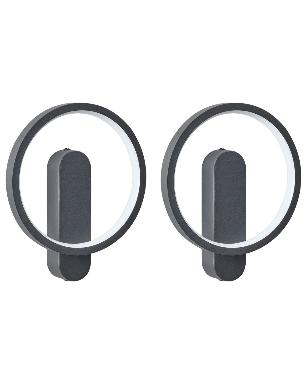 Set of 2 Wall Lamps LED Black Metal Silicone Round Shape Powder Coated Modern Style Beliani