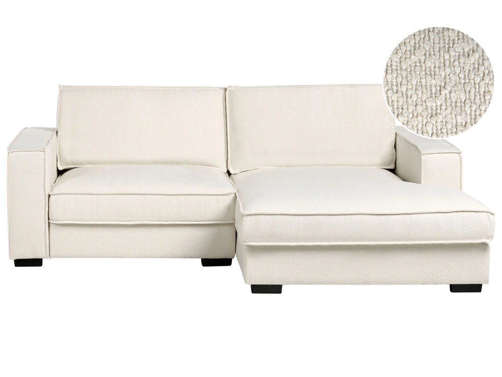 Left Hand Corner Sofa Bed Light Beige Boucle Polyester Upholstered 2 Seater L-Shaped with Cushions Modern Style Living Room Beliani is backordered and will ship as soon as it is back in stock.