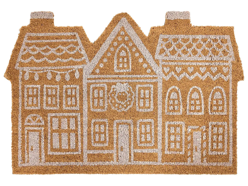 Doormat Natural Coir with Rubber Bottom 60 x 90 cm Xmas Christmas Gingerbread House Festive Motif Anti Slip Beliani