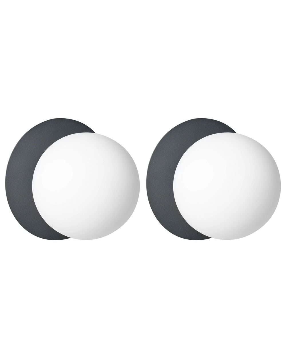 Set of 2 Wall Lamps Black Metal Base Glass Shade Modern Style Beliani