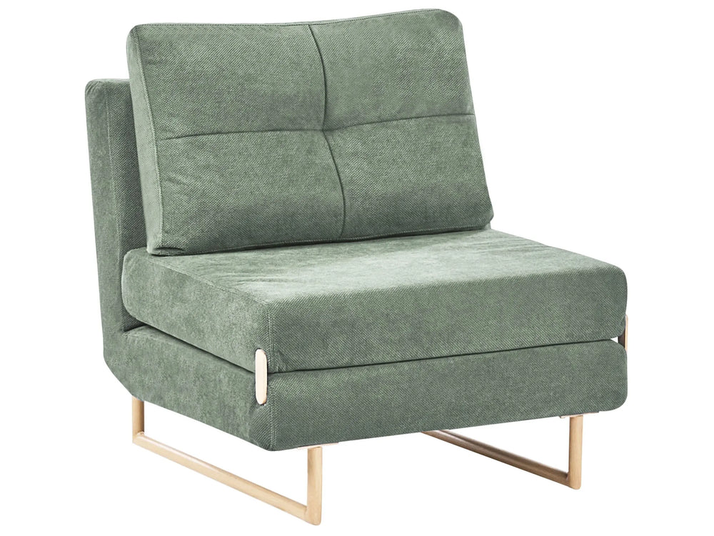 Single Sofa Bed Light Green Fabric Chair Bed for 1 Person Fold Out Sleeper Armchair Beliani