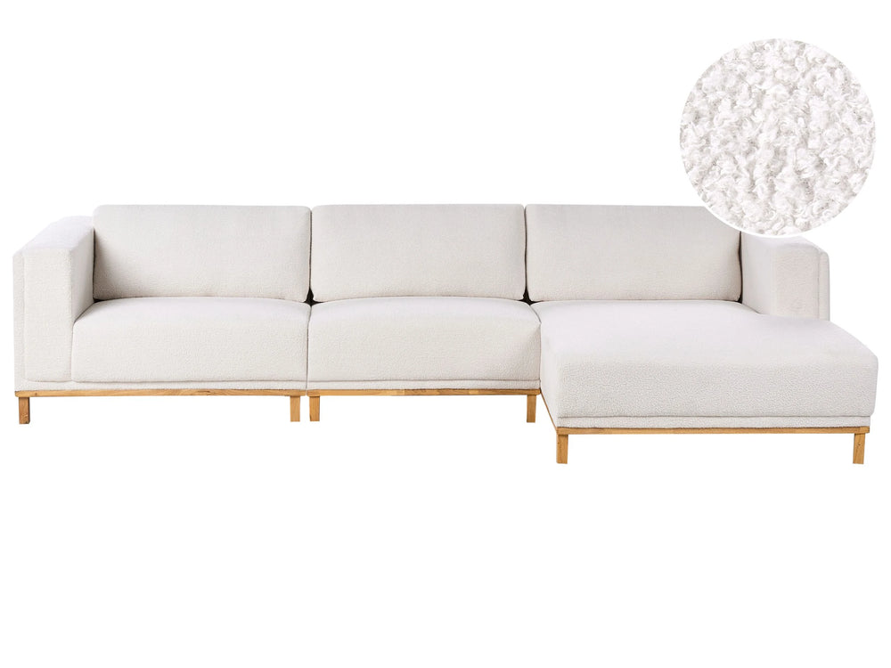 Left-Hand Corner Sofa White Boucle Upholstery Wooden Legs 5 Seater Thickly Padded Modern Style Living Room Furniture Beliani