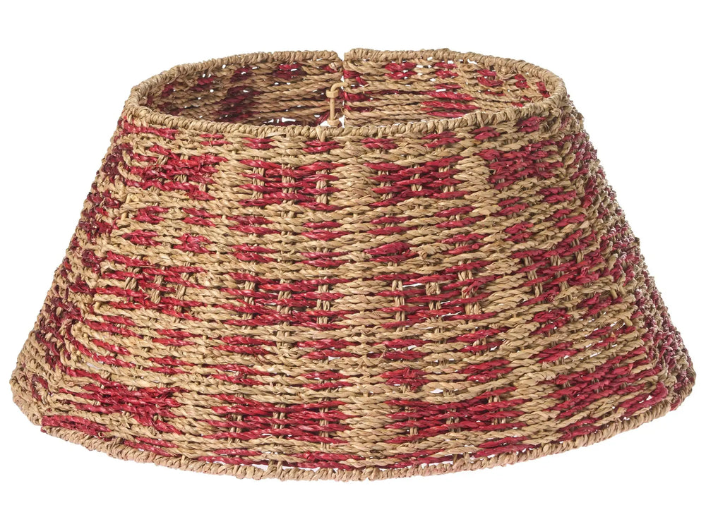 Christmas Tree Collar Natural with Red Seagrass 52cm Handmade Round Accessories Beliani