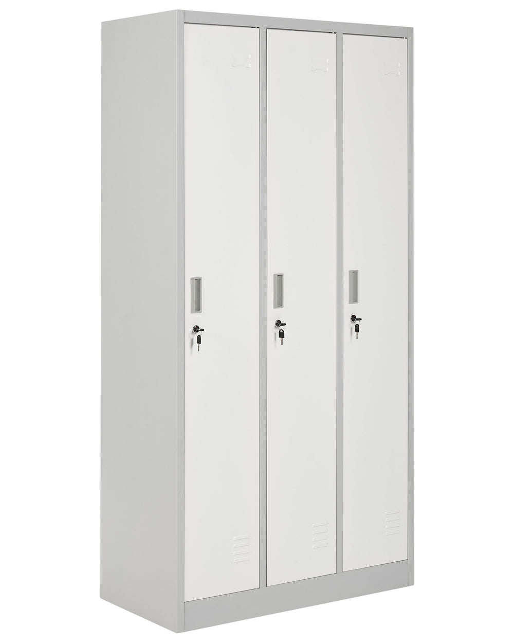 Storage Locker White and Grey Metal Clothes Cabinet 3 Doors Gym School Changing Room Beliani