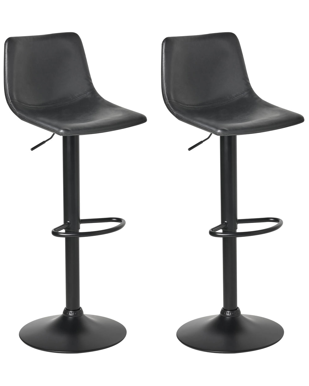 Set of 2 Barstool Black Faux Leather Upholstery Black Footstool Swivel Traditional Beliani