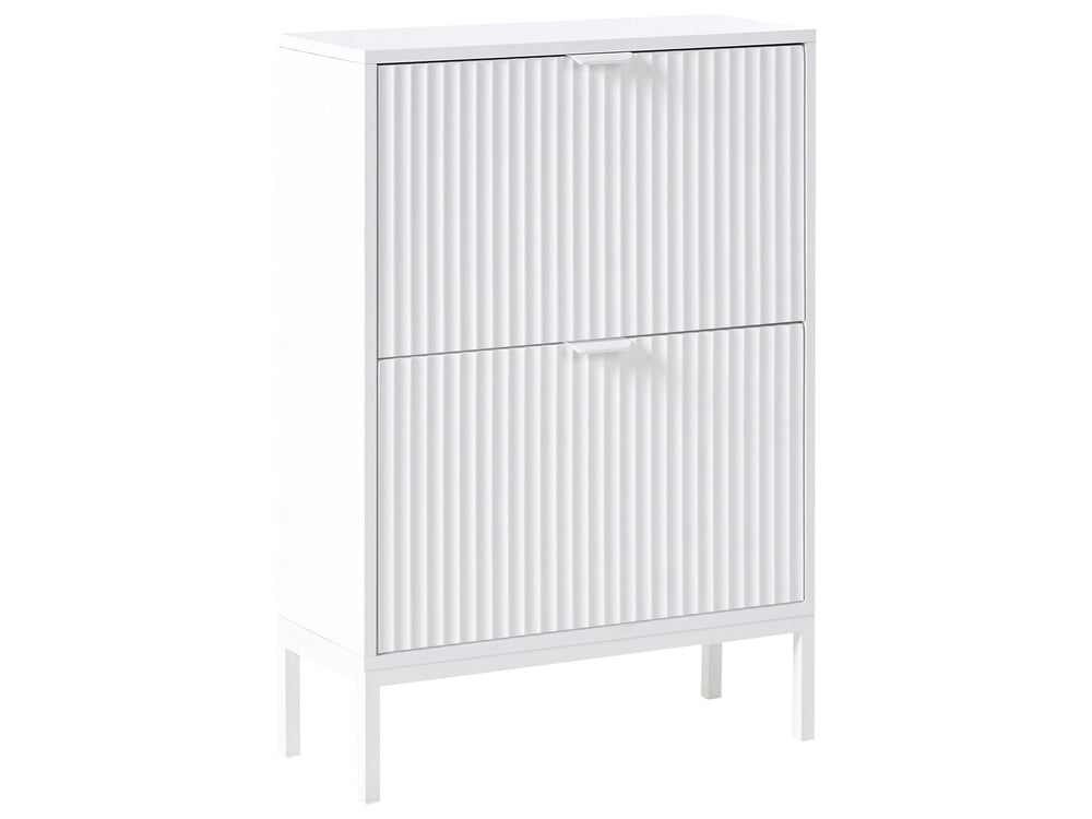 Shoe Storage Cabinet White MDF 2 Compartments Fluted Modern Design Hallway Beliani