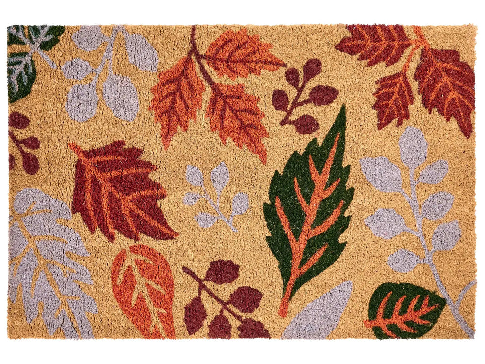 Doormat Multicolour Coir with Rubber Bottom 60 x 90 cm Anti Slip Decoration Leaves Pattern Welcome Mat Beliani