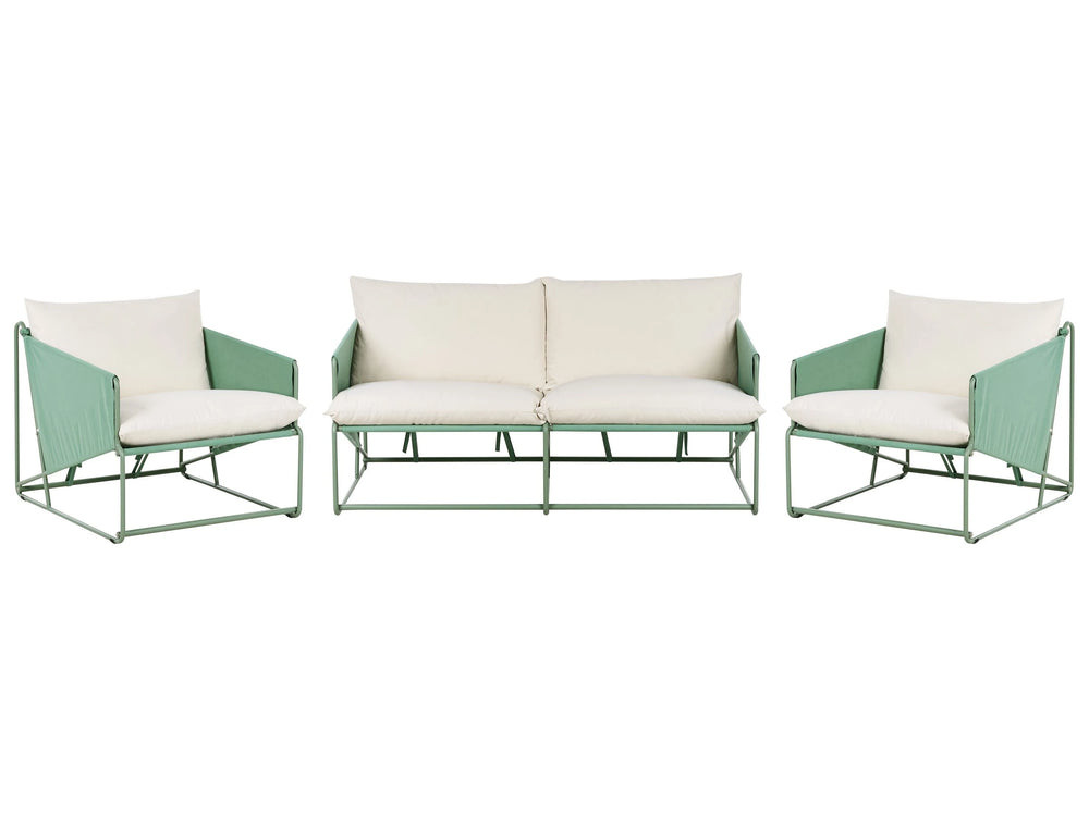 Low Oversized Sofa and 2 Chairs Set Green Metal Backrest Seat Cushions Slipper Design Indoor and Outdoor Modern Design Beliani is backordered and will ship as soon as it is back in stock.