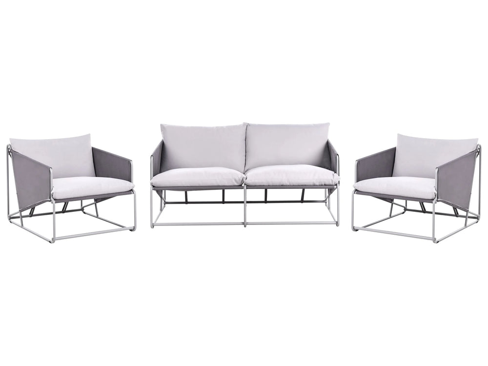 Low Oversized Sofa and 2 Chairs Set Grey Metal Backrest Seat Cushions Slipper Design Indoor and Outdoor Modern Design Beliani is backordered and will ship as soon as it is back in stock.