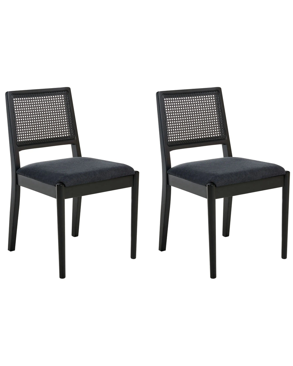 Set of 2 Dining Chairs Black Upholstered Seat Polyester Rubber Wood PE Rattan Frames Retro Style Dining Room Beliani