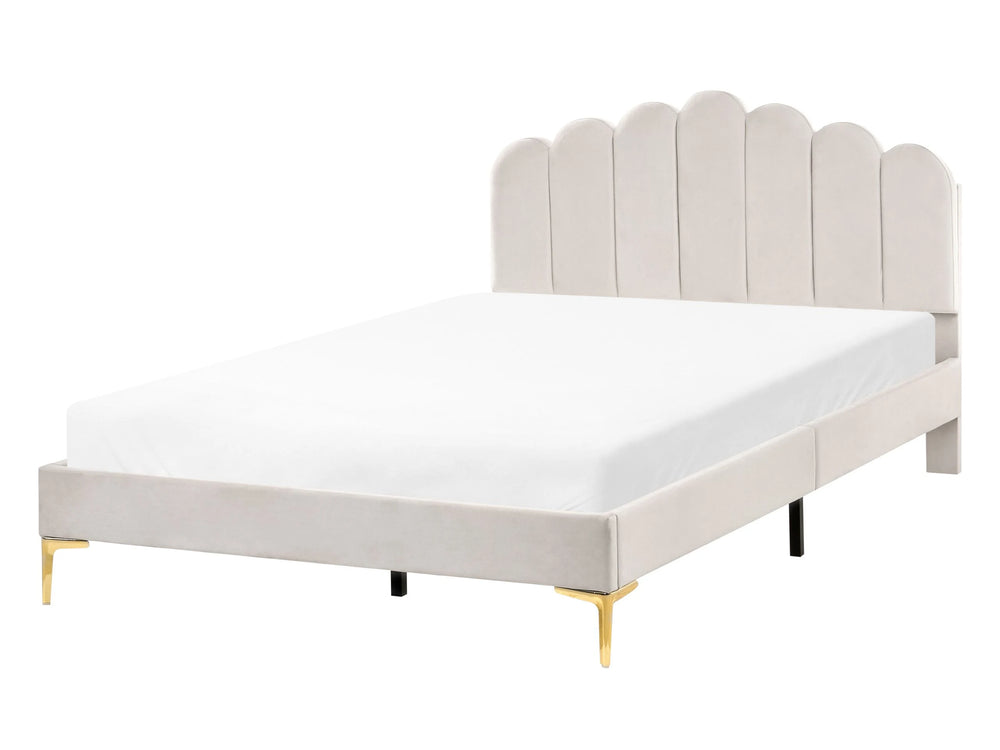 Bed Off-White Velvet 4ft6 Double Metal Legs with Headboard and Slatted Base Beliani is backordered and will ship as soon as it is back in stock.