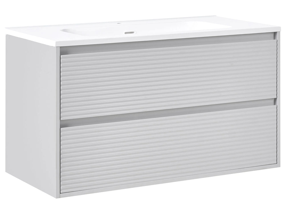 Wall Mounted Bathroom Cabinet Vanity Unit Grey 100 x 46 cm with 2 Drawers with Washbasin Beliani