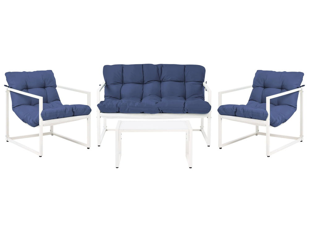 Garden Sofa Set Blue Galvanized Steel 4 Seater with Armchairs Sofa Coffee Table Modern Design Outdoor Conversation Set Beliani is backordered and will ship as soon as it is back in stock.