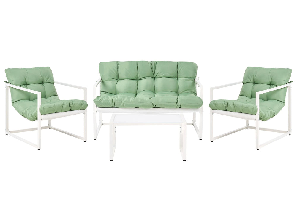 Garden Sofa Set Green Galvanized Steel 4 Seater with Armchairs Sofa Coffee Table Modern Design Outdoor Conversation Set Beliani is backordered and will ship as soon as it is back in stock.