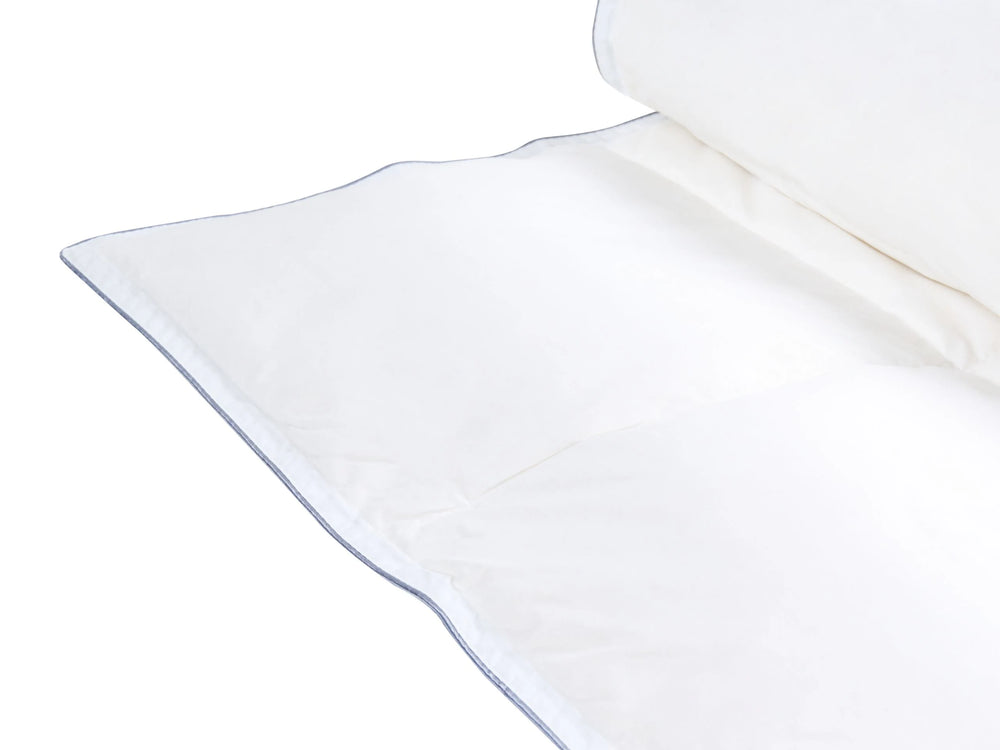 Enjoy a comfortable nights sleep with this light warm duvet, filled with a generous mix of natural down and feathers for soft, supportive comfort. The breathable filling helps regulate temperature, keeping you cosy without ever feeling too hot. Encased in a luxurious cotton cover with subtle silver-thread piping, it brings an elegant touch to your bedroom.