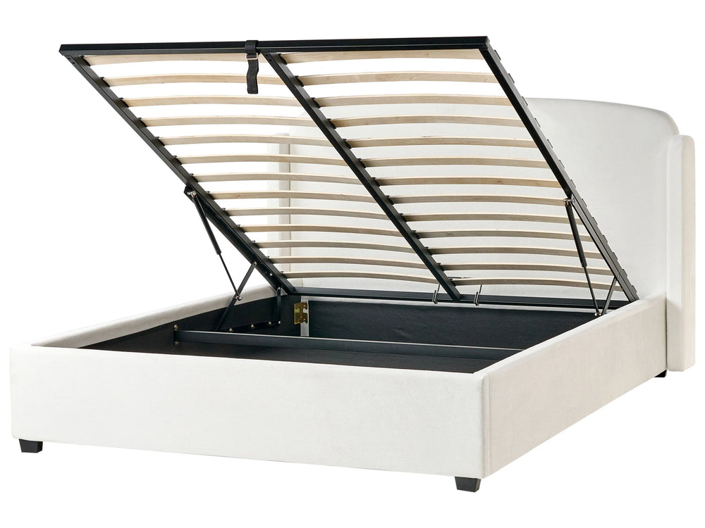 Bed Off-White Fabric Upholstery EU King Size 5ft3 Scandinavian Modern Minimalist Design Winged Headboard Beliani