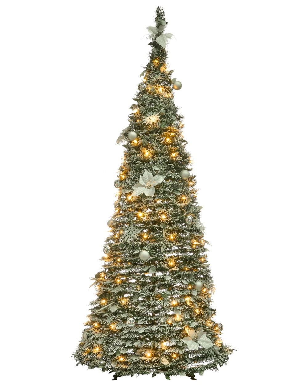 Artificial Christmas Tree White Synthetic 185 cm Snow Frosted Folding LED Fairy Lights Holiday Beliani