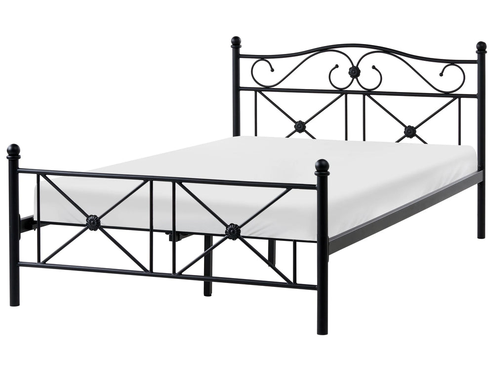 EU Small Double Size Panel Bed 4ft Black Metal Frame Slatted Base Retro Beliani