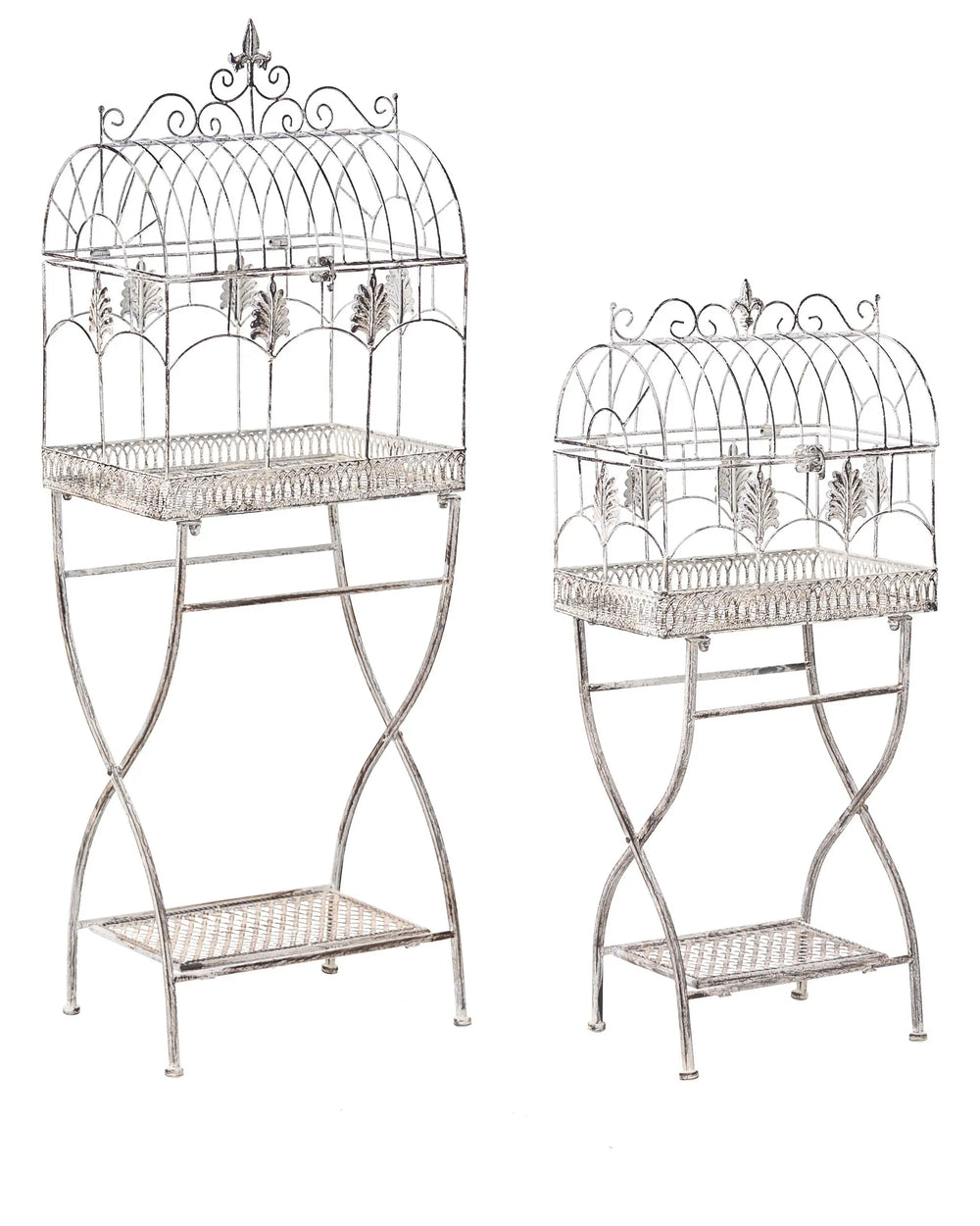 Set of 2 Plant Shelf Metal Grey Shelves Garden Freestanding Outdoor Indoor Bathroom Garden Storage Beliani