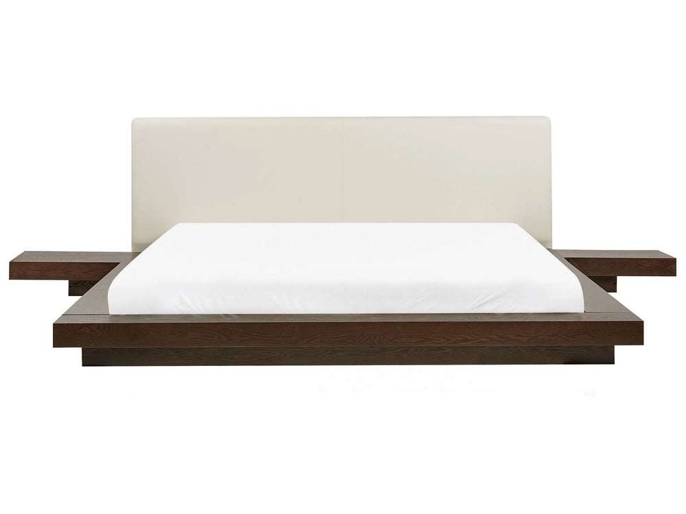 Japan Water Bed Dark Ash Wood EU Super King Size 6ft Wooden Frame MDF Faux Leather Headboard Low Profile with Mattress Bedroom Beliani